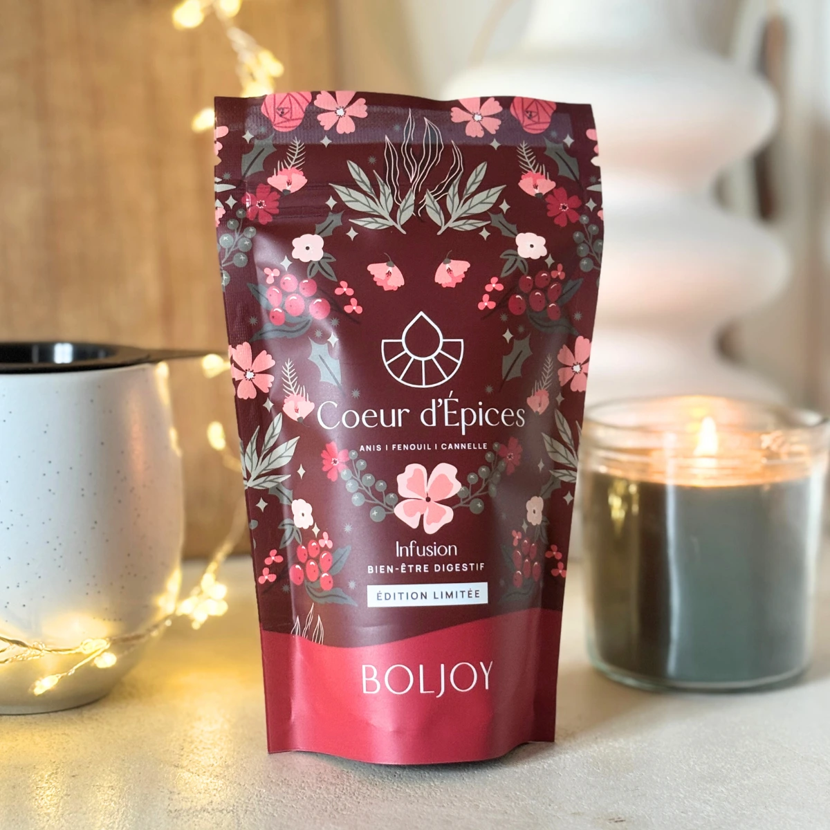 Un mélange chaleureux de fenouil, anis, cannelle et gingembre, pour un moment de détente et de bien-être après les repas de fête.